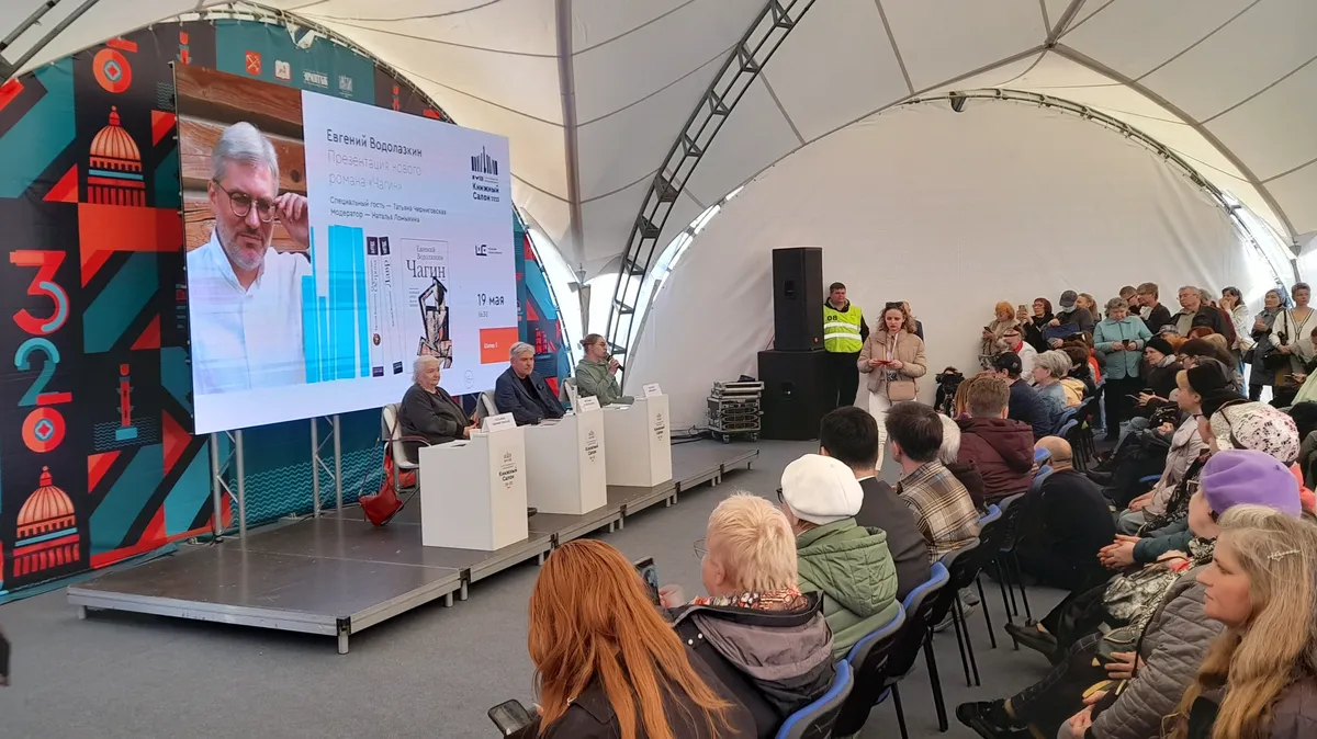 Писатель Евгений Водолазкин вместе с исследовательницей Татьяной Черниговской представил поклонникам свой роман «Чагин». Это история советского человека, которому удалось закрепиться в Ленинграде благодаря доносу. Узнав, на что Чагин способен, его бросила возлюбленная. У героя феноменальная память, и он вынужден помнить буквально всё — воспоминания мучают его.