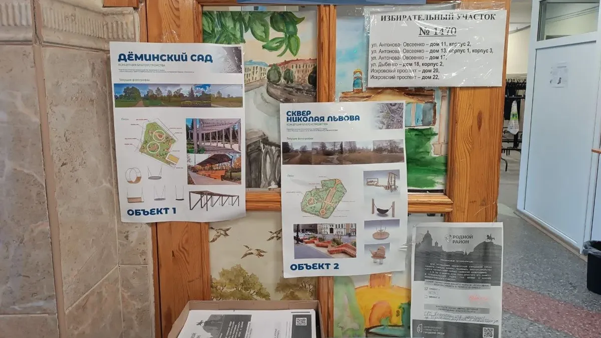 На избирательных участках установлены стенды: на них листы с информацией об объектах для голосования, но только в пределах района.