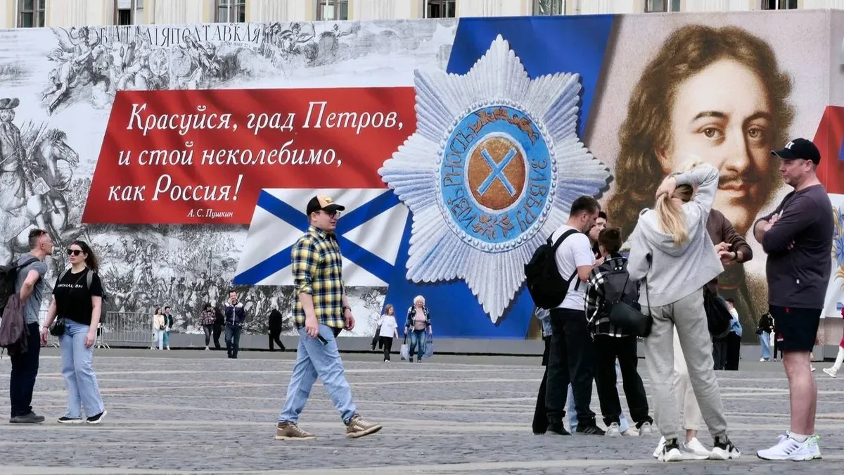 В этом году оформление будет схоже с тем, что было в 2023-м. В украшениях так же активно применили символику петровских времён: штандарты, стяги, армейские и морские знамёна, флаги России и Петербурга с изображением Петра I.
