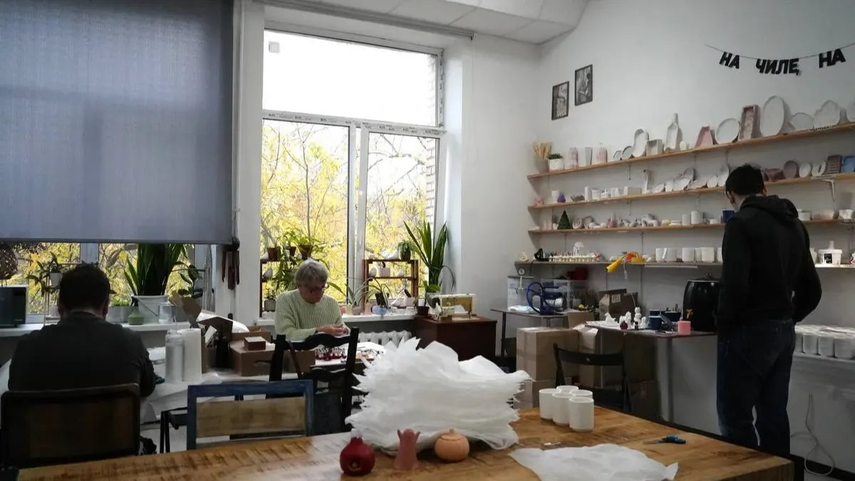 В «чистой комнате» трудятся несколько молодых людей и девушек с куратором. Из-под их рук выходят изделия из гипса, бетона и искусственного камня. Результат можно увидеть на полках: там выложены уличные кашпо, вазоны, подставки, мыльницы. Выделяются тематические подсвечники: заснеженные избы к Новому году, тыквы к Хэллоуину. Туда работники поместят свечи, которые сейчас старательно варят.