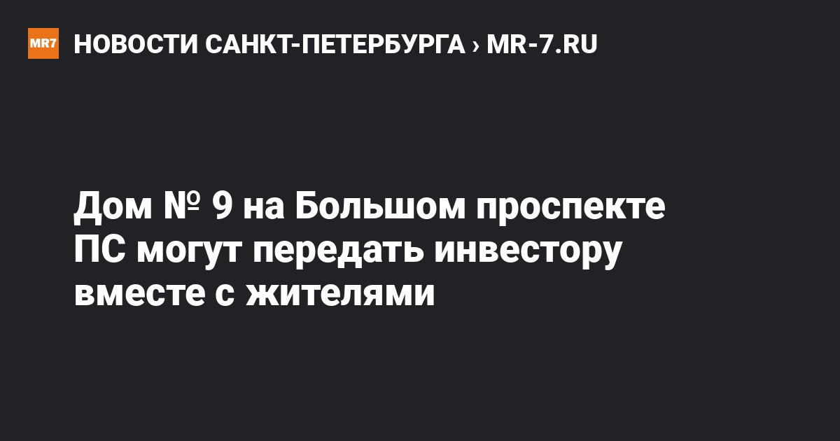 Дом № 9 на Большом проспекте ПC могут передать инвестору вместе с жителями