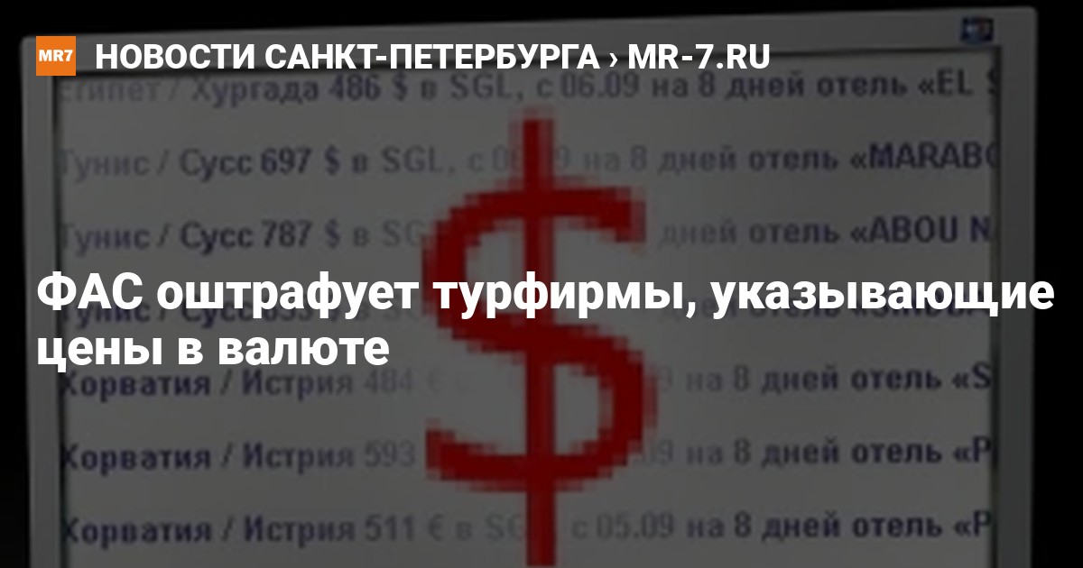 Территориальные управления Федеральной антимонопольной службы (ФАС) начало проверять рекламные объявления турфирм, где цены заявлены не в рублях, а в иностранной валюте.