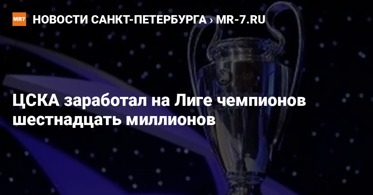 По итогам выступления в Лиге чемпионов ЦСКА заработал 16,2 млн. долларов (3,8 млн. за участие в групповом турнире, 3,3 млн. - за шесть матчей, проведенных в групповом турнире, 2,8 млн.- за набранные на этом этапе очки, 3 млн. - за выход в 1/8 финала, 3,3 млн. - за выход в четвертьфинал).