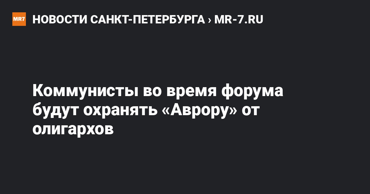 Завтра, в день открытия Международного экономического форума, Коммунисты Петербурга и Ленинградской области (КПЛО) собираются начать патрулировать крейсер «Аврора».