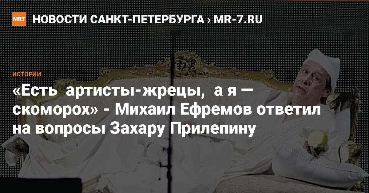 З. П.: Я себе представляю Ефремова, как представляет серьезная часть народа. Этот человек всегда немного навеселе, всегда в компаниях, у которого какое‑то количество жен, детей. И при этом он снялся в 108 фильмах, гастролирует с «Гражданином поэтом». Непонятно, как это все вмещается в одного человека.