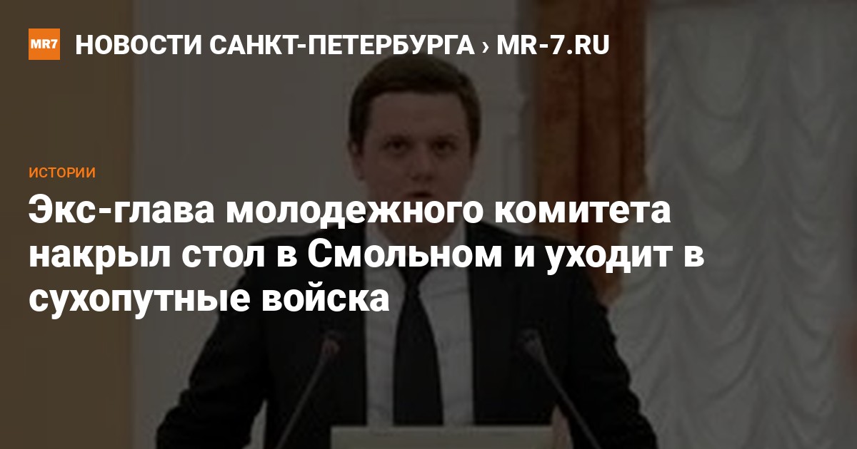 Экс-председатель Комитета по молодежной политике Никита Александров призван в сухопутные войска. Отправка к месту службы назначена на 24 апреля. Георгий Полтавченко, который ранее обещал проводить Александрова на военную службу, возможно, придет на отправку в этот день. Вчера, 15 апреля, Александров накрыл стол в Смольном. Следующую неделю он будет отдыхать, заниматься спортом и прощаться с родными.