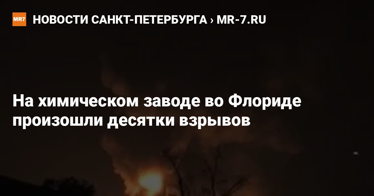 Взрывы на химзаводе во Флориде привели к мощному пожару. Пламя от возгорания, как свидетельствуют кадры видео пользователя YouTube GittyBrothers (смотрите запись ниже), поднимается на десятки метров. Из-за взрыва, как передает FOX News, снесло крышу здания, расположенного на территории. По другим сведениям, взрыв разрушил одну из стен.