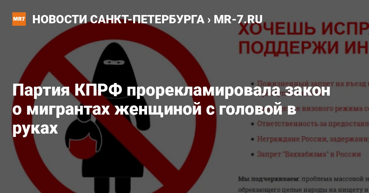 Партия КПРФ после убийства ребенка в Москве инициировала идею получения рабочих виз для жителей СНГ (кроме Белоруссии и Казахстана). Свою инициативу на сайте партии коммунисты проиллюстрировали изображением женщины в никабе и головой в руках.