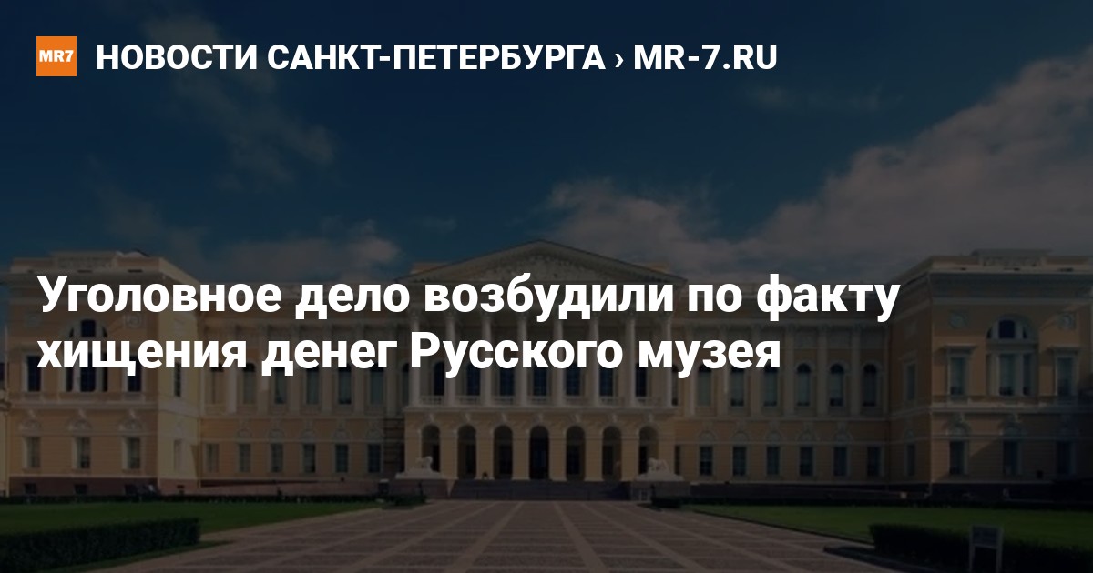 Полиция Петербурга возбудила уголовное дело по факту хищения денег у Русского музея, сообщили в пресс-службе ГУ МВД.