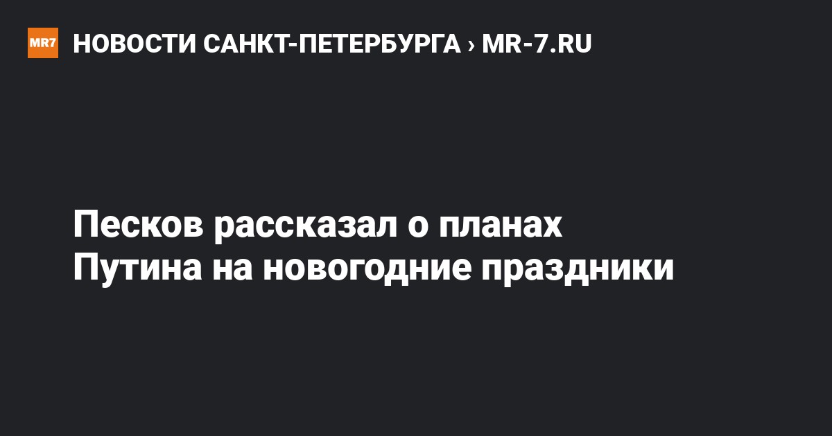 У президента Владимира Путина не будет полноценных девятидневных новогодних каникул, рассказал журналистам пресс-секретарь главы государства Дмитрий Песков.