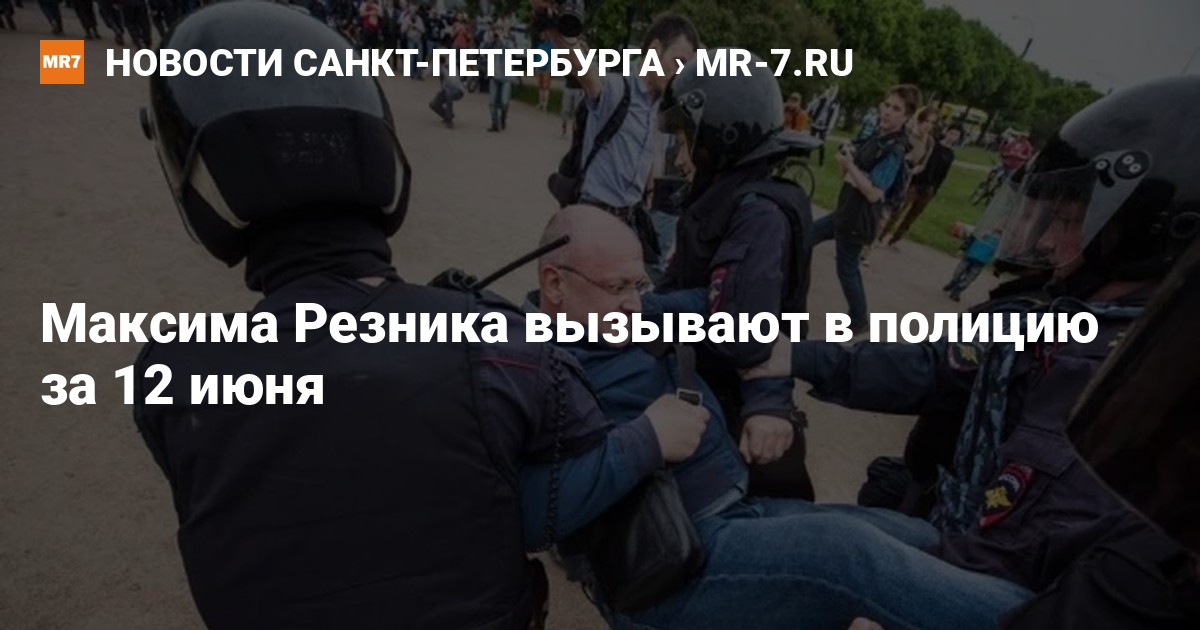Депутата законодательного собрания Санкт-Петербурга Максима Резника вызвали в 78-й отдел полиции по итогам несанкционированной акции 12 июня 2017 года для составления протокола об административном правонарушении. Он пойдет туда в четверг 27 июля 2017 года.