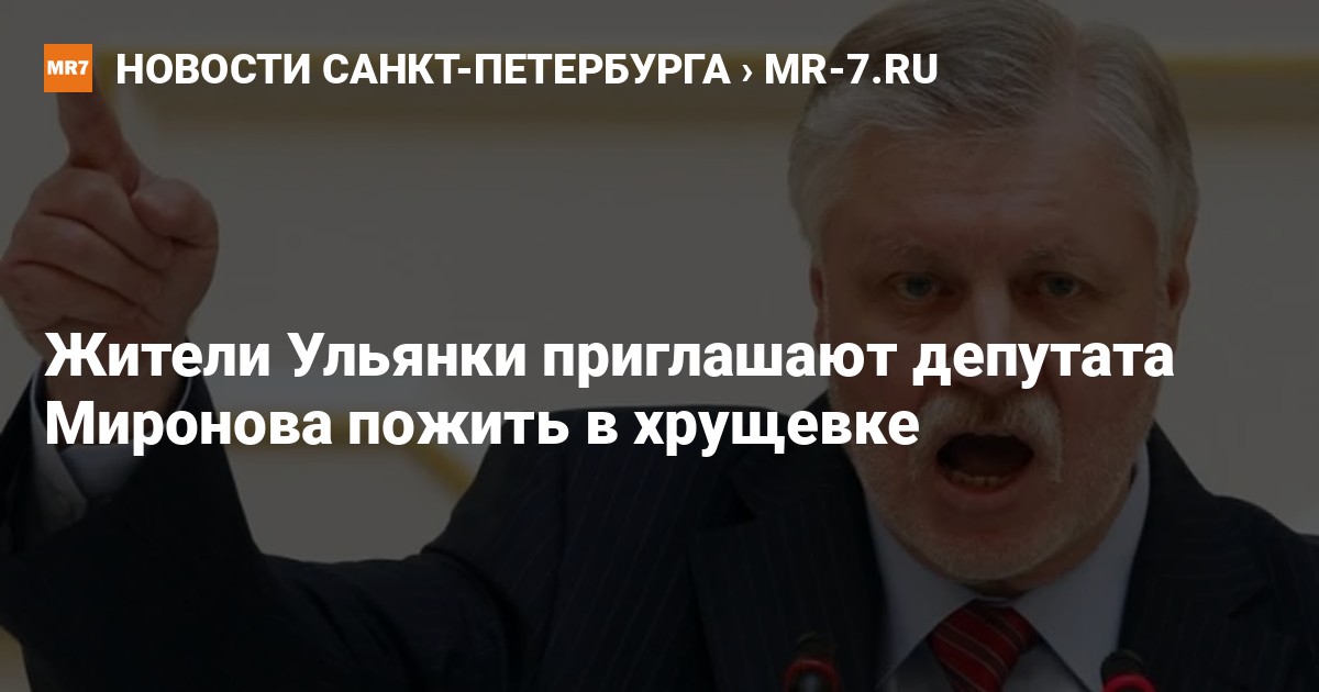 Жители домов, входящих в зону реновации в микрорайоне Ульянка, предложили депутату Госдумы Сергею Миронову пожить в хрущевке. Лидер «Справедливой России» ранее предложил свернуть программу реновации в Петербурге.