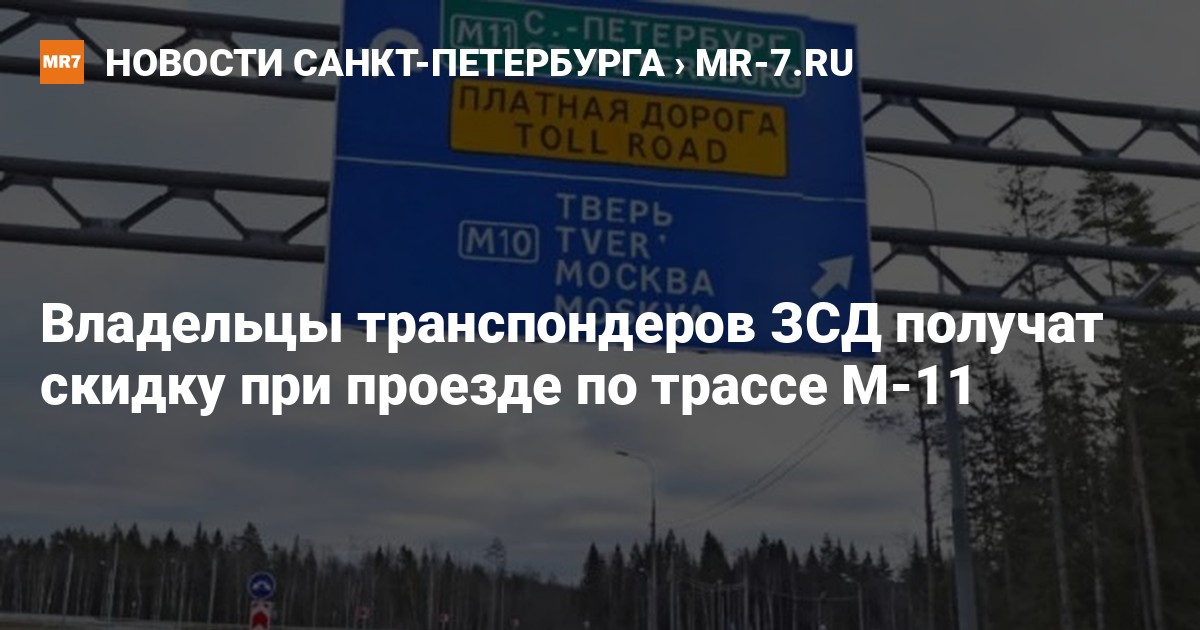 Владельцы транспондеров ЗСД получат скидку при проезде по трассе М-11