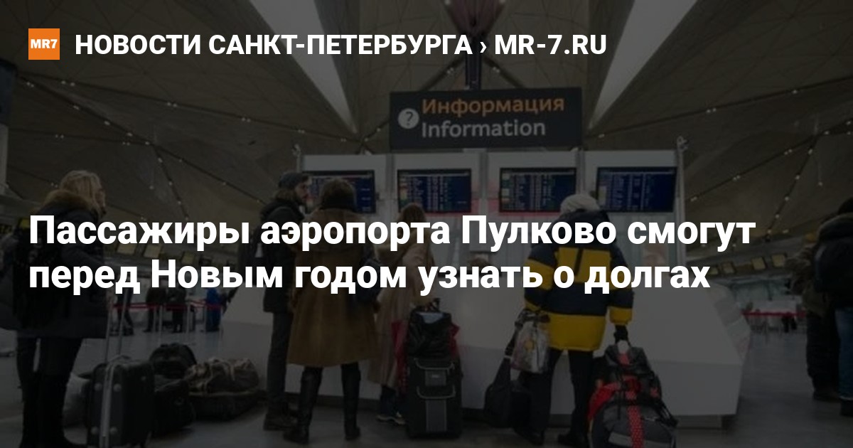 Во вторник, 24 декабря, в зале регистрации аэропорта Пулково с 09:00 до 11:00 пройдет ежегодная акция проверки коммунальных задолженностей «До свидания, град Петров! Лечу в отпуск без долгов!». Пассажиров встретят судебные приставы и сотрудники «ТГК-1» и Петроэлектросбыта.