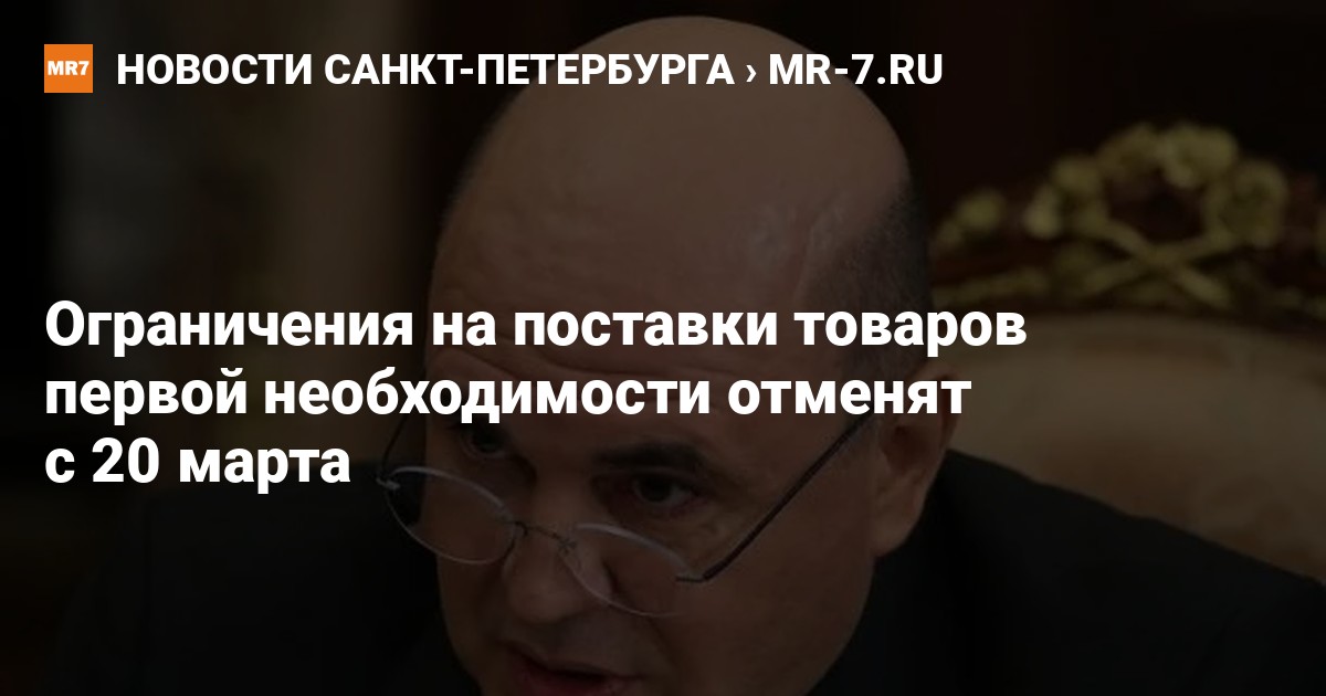 Правительство России отменит ограничения на поставки товаров первой необходимости отменят с 20 марта, сообщают «Известия» со ссылкой на премьер-министра страны Михаила Мишустина.