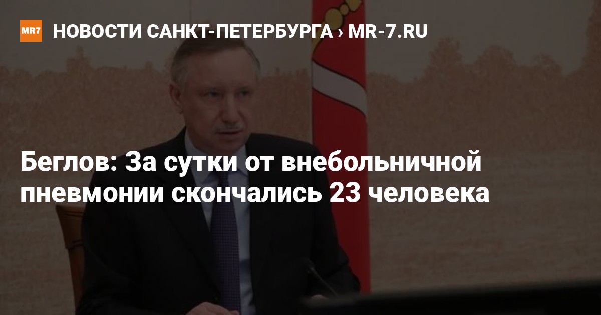 По словам Беглова, за сутки от внебольничной пневмонии скончались 23 человека, у трёх из них был подтвержденный тест на коронавирус. По данным губернатора, больных пневмонией в Петербурге в 2,5 раза больше, чем людей с подтверждённым диагнозом коронавирус.