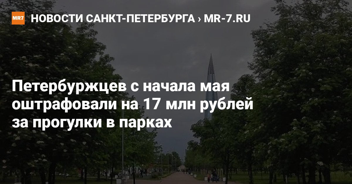 Петербуржцев с начала мая 2020 года оштрафовали на 17 млн рублей за прогулки в парках, сообщает «Интерфакс» со ссылкой на пресс-службу законности комитета по вопросам законности, правопорядка и безопасности.