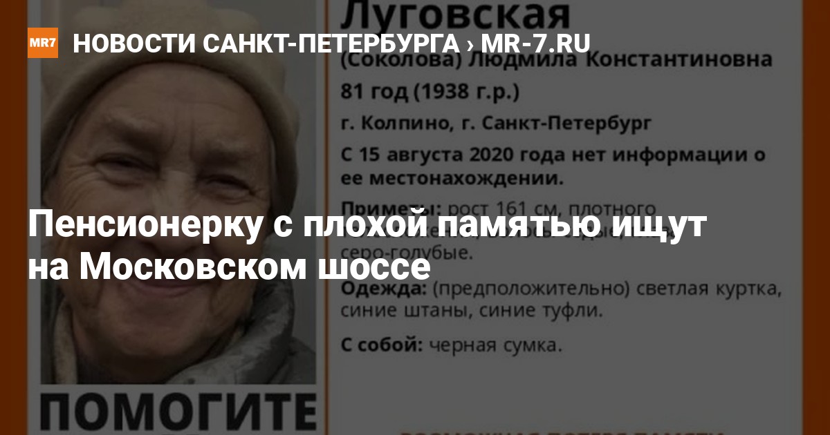 Всех, кто проезжал от участка Ульяновки до Петербурга по Московскому шоссе с 9:00 15 августа до 20:00 18 августа просят обратить внимание на записи видеорегистраторов. Информацию о пенсионерке можно сообщить по номеру: 8(800)700−54−52.