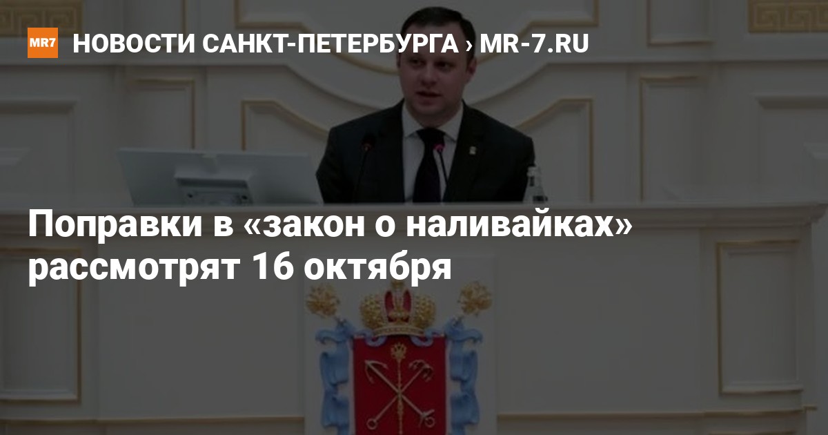 Поправки в так называемый «закон о наливайках» в Петербурге рассмотрят завтра, 16 октября, на заседании Заксобрания. Об этом в своем Telegram-канале сообщил автор законопроекта, депутат Денис Четырбок. По его словам, соответствующий документ уже разработан. Заседание начнется в 10:00.
