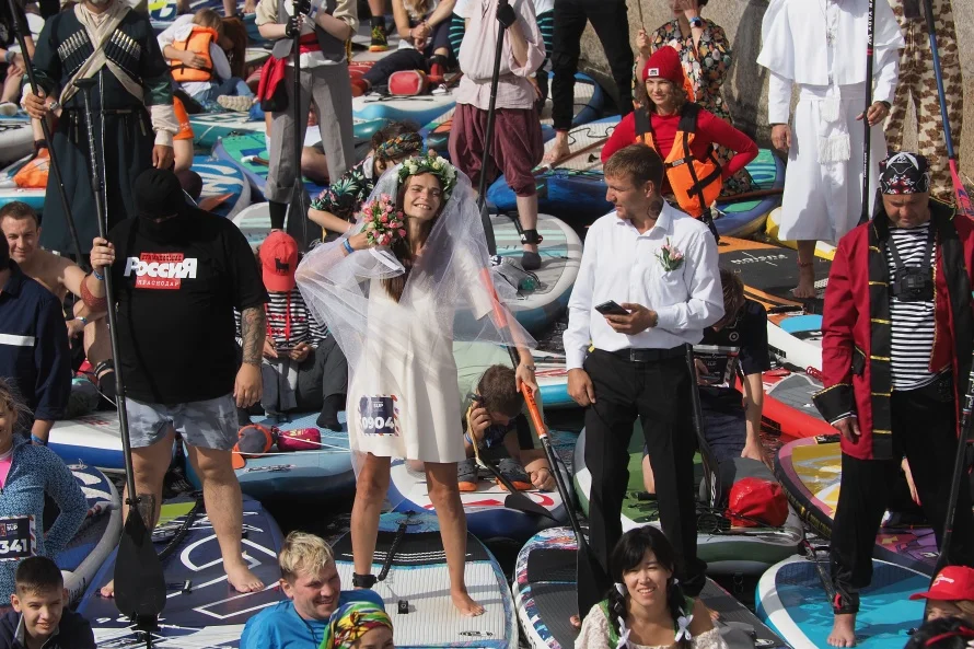 Стартовали сап-серферы в 10 утра у Михайловского замка. В мероприятии участвуют как команды, так и спортсмены по одиночке. По предварительным данным, фестиваль должен собрать около трех тысяч человек.