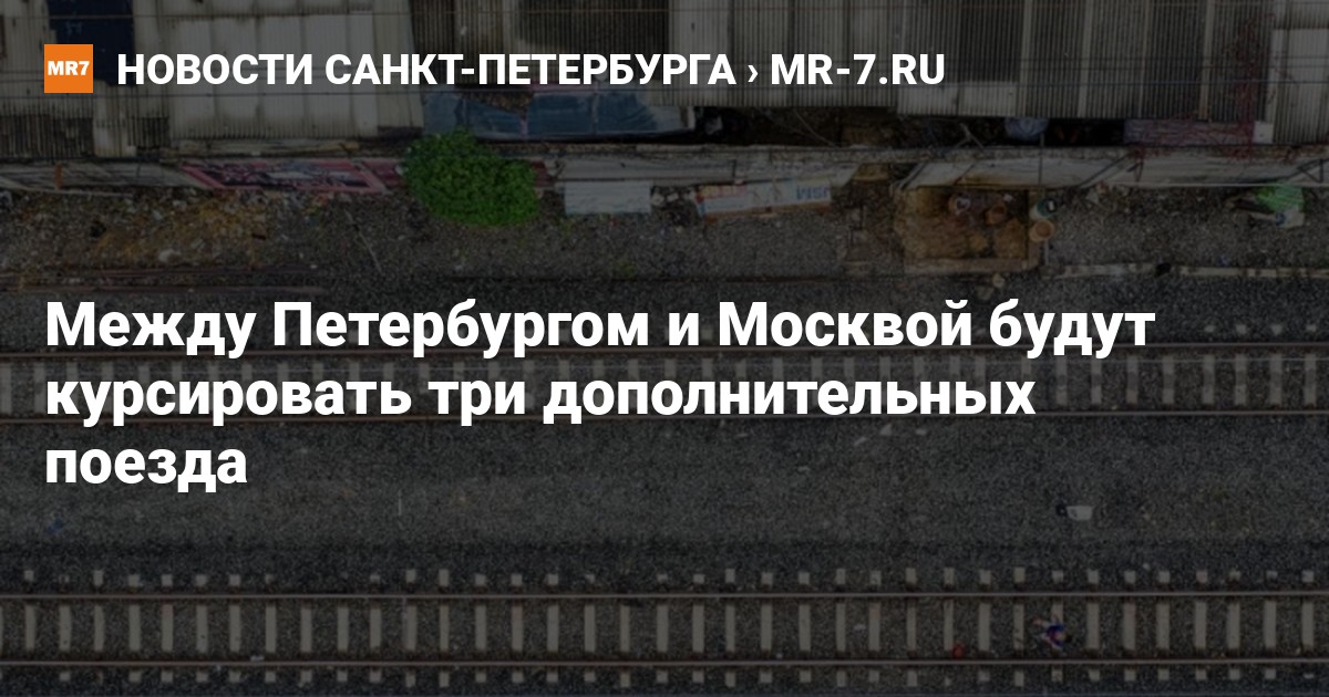 Дополнительный поезд № 53 запустят для пассажиров из Москвы в Петербурге 20, 26, 27, а также 2 и 3 сентября. Время отправления — 21:24, время прибытия — 05:03.