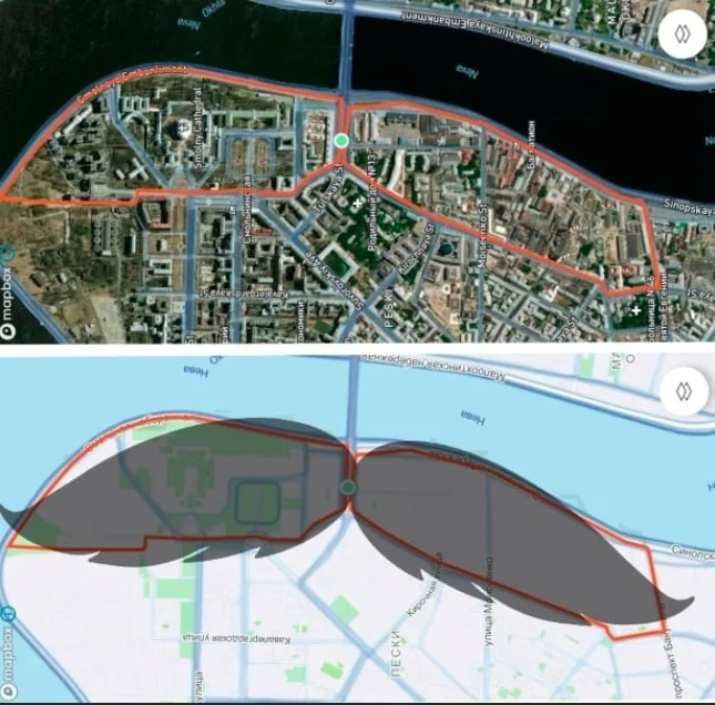 Сделать усы вокруг Смольного активистам помог GPS-трекер. Маршрут участников забега пролегал по Смольной набережной, Новгородской улице и замыкался на Тульской улице. Скриншотами с карт поделились в сообществе «Молодой Петербург» «ВКонтакте». Чтобы соответствовать названию и замыслу акции, все ее участники без усов восполнили их отстсутствие на своем лице.