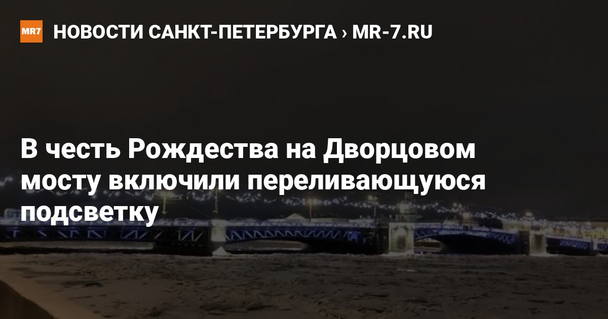 В Петербурге в честь Рождества Христова включили переливающуюся праздничную подсветку Дворцового моста. Об этом сообщил ГБУ «Ленсвет» на своей официальной странице в «ВКонтакте».