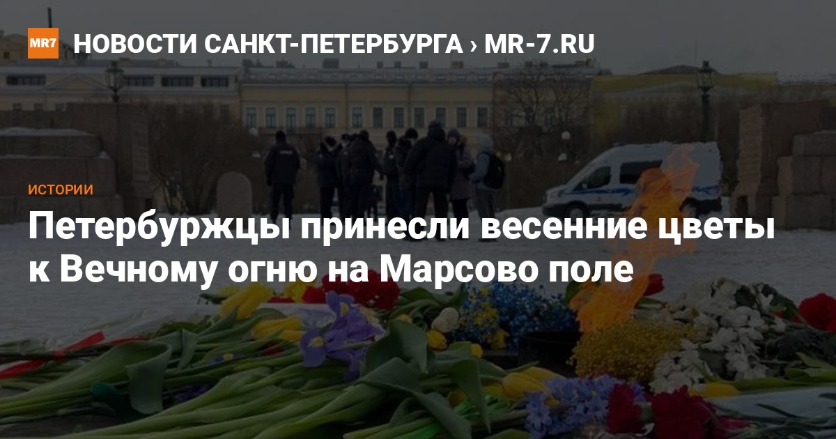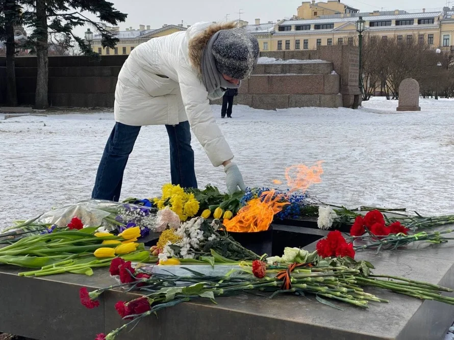 Петербуржцы принесли весенние цветы к Вечному огню на Марсово поле