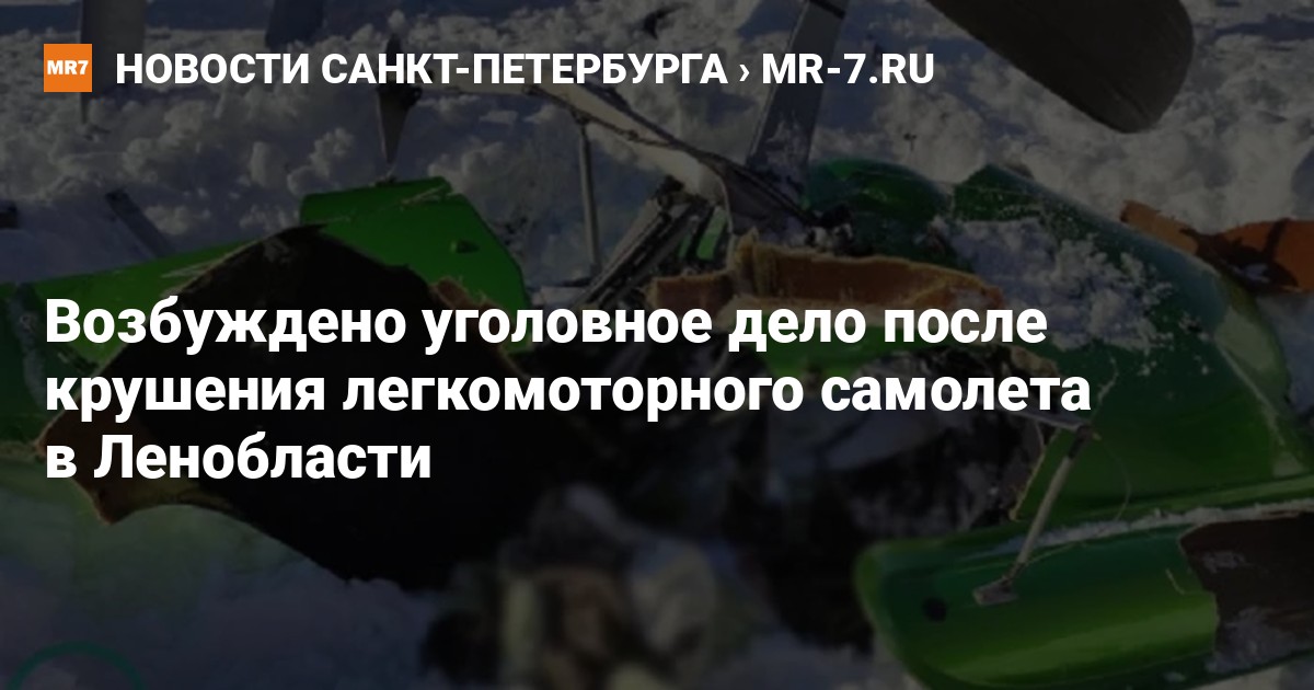 После крушения легкомоторного самолета в Волховском районе Ленобласти было возбуждено уголовное дело по ч.3 ст. 263 УК РФ («Нарушение правил безопасности движения и эксплуатации воздушного транспорта»). Об этом сообщили в Западном межрегиональном СУ на транспорте Следственного комитета РФ.