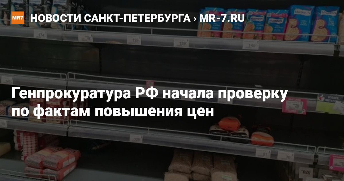 Генеральная прокуратура России начала проверять цены на продукты, бытовую химию и другие товары, сообщили 18 марта в пресс-службе ведомства. Тем временем петербуржцы в социальных сетях делятся фотографиями пустых полок и жалуются на рост стоимости товаров.