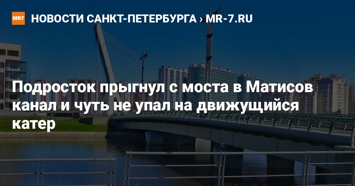 В Красносельском районе прыжок подростка с моста в Матисов канал чуть не закончился трагедией. Мальчик пролетел в считанных сантиметрах от борта катера, который проплывал под мостом. Видео появилось в группе «БЖonline | Балтийская Жемчужина» в соцсети «ВКонтакте».
