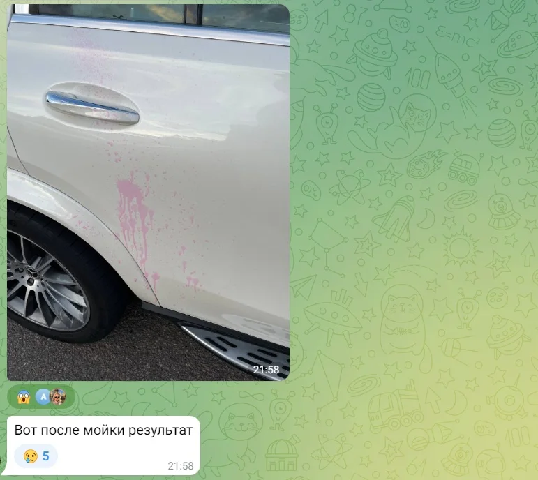 Один случай произошёл в Котке. Там белый Mercedes семейной пары из Петербурга облили красной краской. Пострадали задняя дверь и крыло, краску удалось отмыть, но не до конца. При этом соседние автомобили с российскими номерами не тронули. В полицию петербуржцы обращаться не стали.
