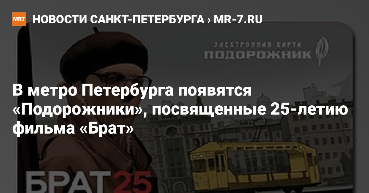 Петербургский метрополитен 13 октября начнет продавать «Подорожники», посвященные 25-летию выхода культового фильма «Брат» Алексея Балабанова. На обложке карты изображен главный герой картины Данила Багров на фоне города.