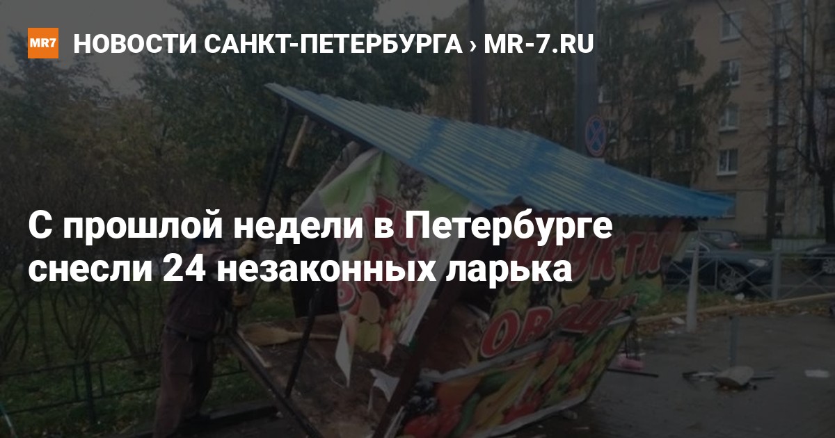 В Петербурге с начала прошлой недели снесли 24 незаконных ларька. Под снос попали нестационарные точки торговли в Выборгском, Красногвардейском, Невском, Кировском, Калининском, Приморском, Фрунзенском, Центральном, Адмиралтейском, Василеостровском, Московском и Курортном районах, передает пресс-служба комитета по контролю за имуществом.