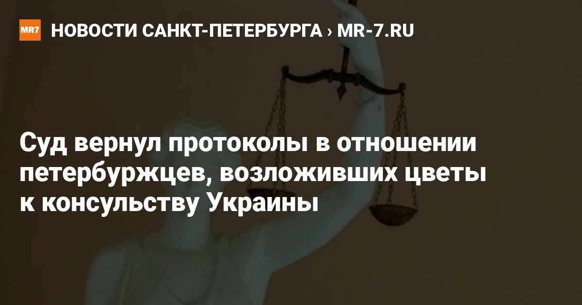 Смольнинский районный суд Петербурга 21 октября вернул составителям протоколы в отношении петербуржцев, которые возложили цветы у бывшего консульства Украины.