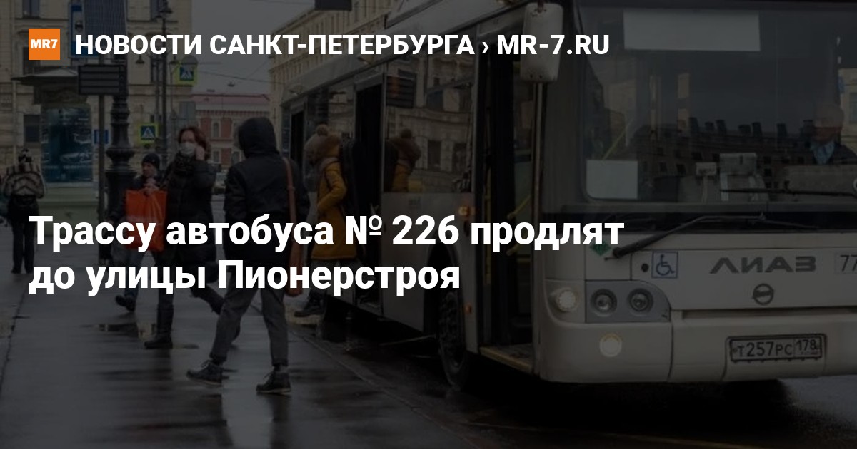 Трассу автобусного маршрута № 226 продлят. В пресс-службе комитета по транспорту Петербурга поделились, что нововведения вступят в силу во вторник 25 октября.