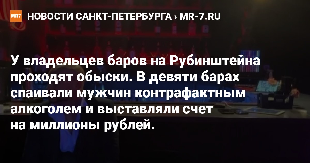 Утром во вторник 8 ноября оперативники провели более 50 обысков по делу об обмане посетителей баров на улице Рубинштейна. За вечер мужчины, которых напаивали алкоголем, оставляли миллионы рублей.