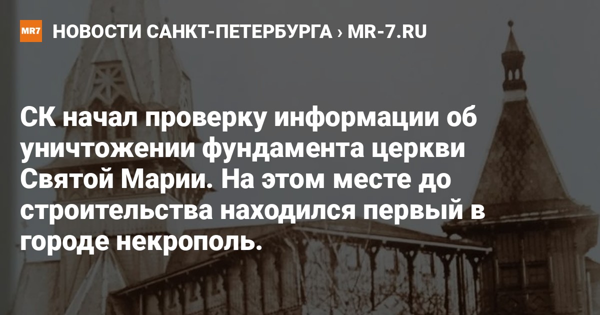 Следственный комитет России отреагировал на открытое письмо петербуржцев с просьбой спасти от уничтожения фундамент церкви Святой Марии. Как сообщили 17 ноября в Telegram-канале «SOS СПб СНОС», проверку уже начали.