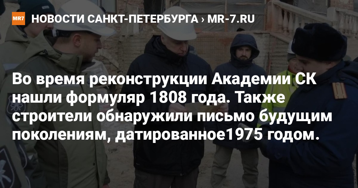 Глава Следственного комитета РФ Александр Бастрыкин осмотрел ход строительства и реконструкции здания культурного центра и двух корпусов Санкт-Петербургской академии СК России. Во время работы строители сделали на интересные находки.