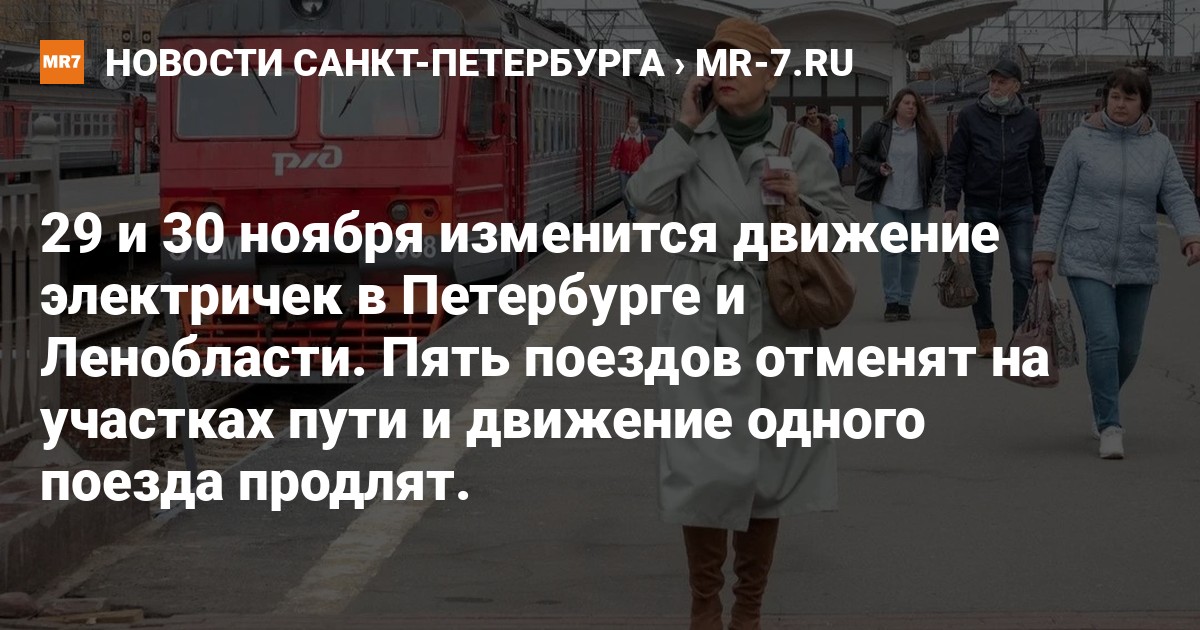 - поезда № 6529, 6544 отменят на участке Санкт-Петербург — Финляндский — Сосново;