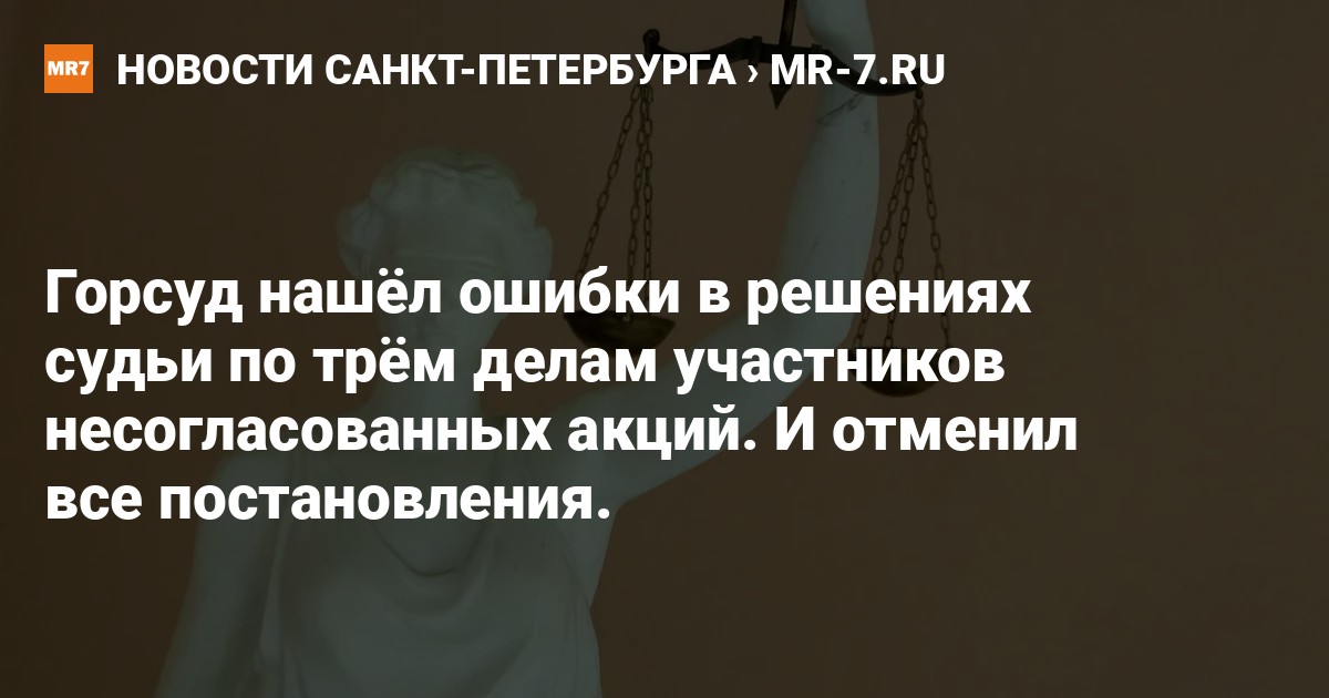 В итоге Горсуд принял решение отменить постановления Комарова и освободить трёх петербуржцев от наказания, а также сообщить председателю Приморского райсуда о допущенных нарушениях, чтобы в будущем подобного не происходило.