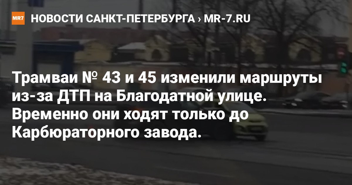 Трамваи № 43 и 45 изменили маршруты из-за ДТП на перекрёстке Благодатной улицы и Витебского проспекта, сообщают в пресс-службе «Организатора перевозок».