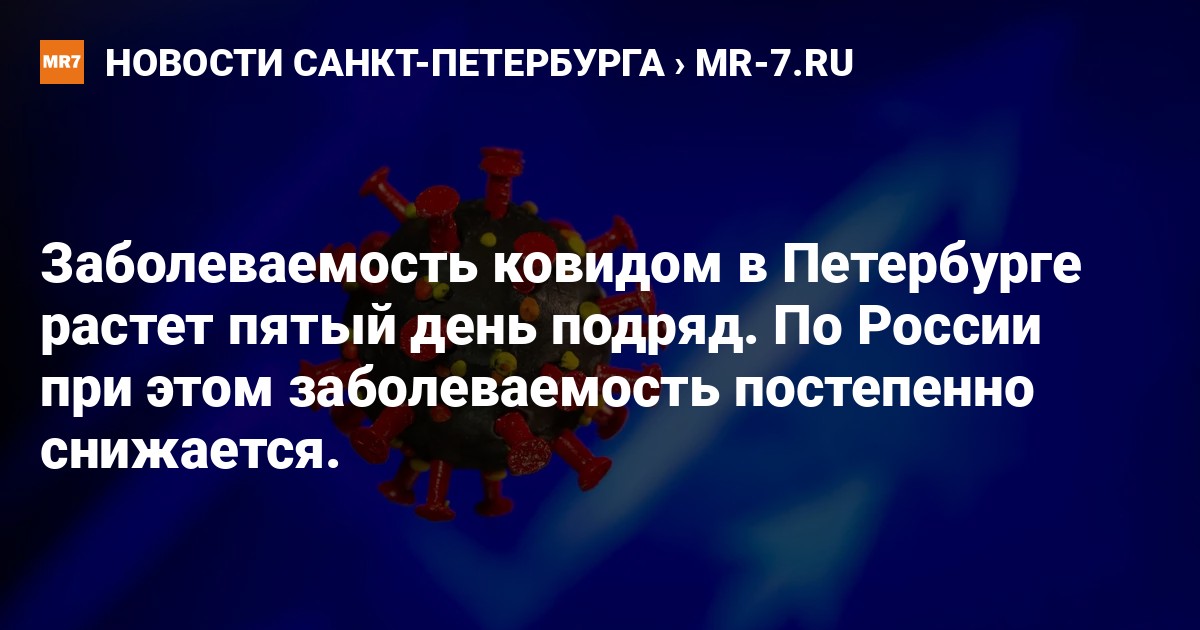 Заболеваемость коронавирусом в Петербурге растет пятый день подряд, следует из официальной статистики.