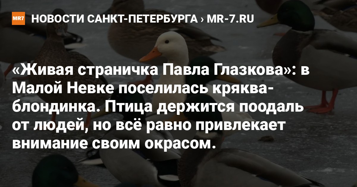 На днях в Малой Невке у Каменноостровского моста поселилась кряква-блондинка. Снимки утки необычного окраса выложил биолог и фотограф Павел Глазков в своей группе «Каждой твари по паре» в соцсети «ВКонтакте».