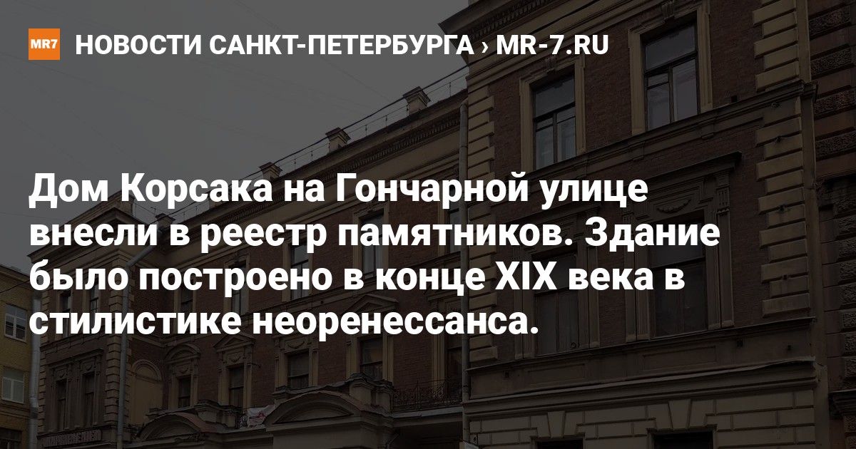 Дом лейтенанта флота Юрия Корсака» на Гончарной, 13, внесли в реестр объектов культурного наследия регионального значения, сообщают в пресс-службе КГИОП.