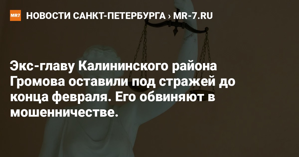 Санкт-Петербургский городской суд продлил срок задержания в СИЗО бывшего главы Калининского района Ивана Громова, обвиняемого в мошенничестве в особо крупном размере, сообщает объединённая пресс-служба судов города.