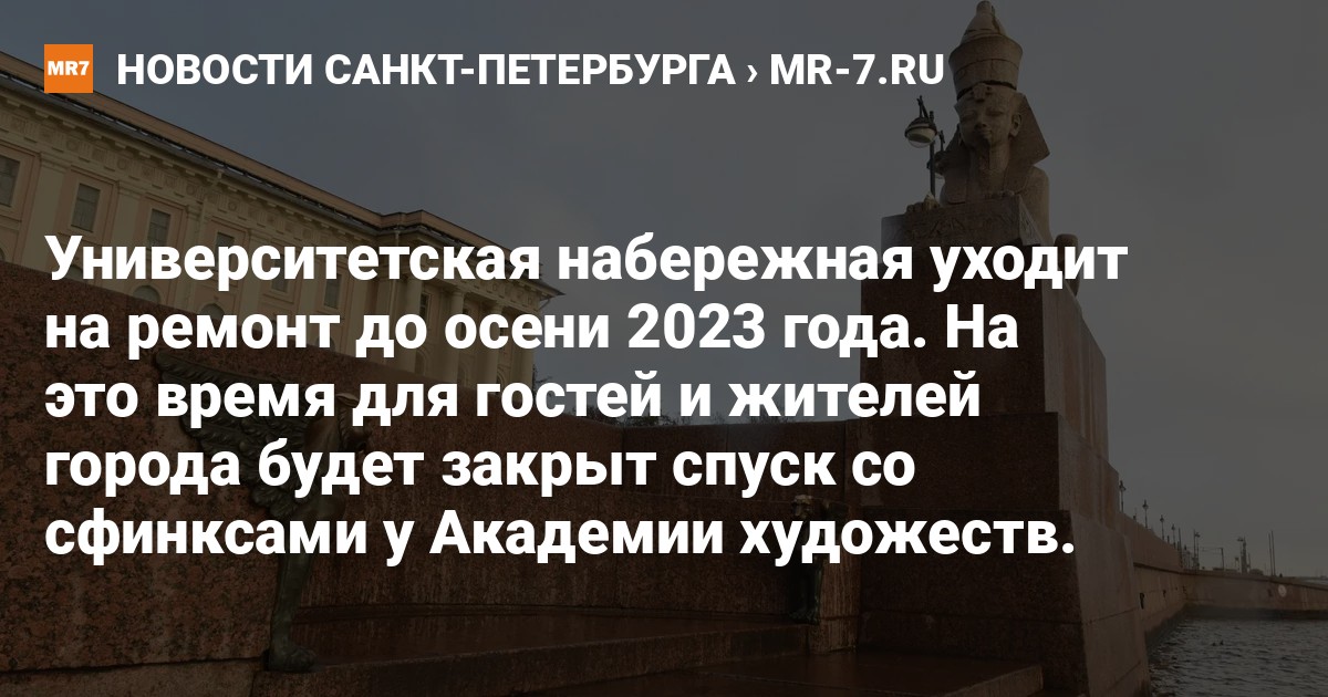 Ремонт планируют завершить в октябре 2023 года. На это время пешеходы смогут гулять только по противоположной стороне набережной. Спуск со сфинксами у Академии художеств во время работ будет закрыт.