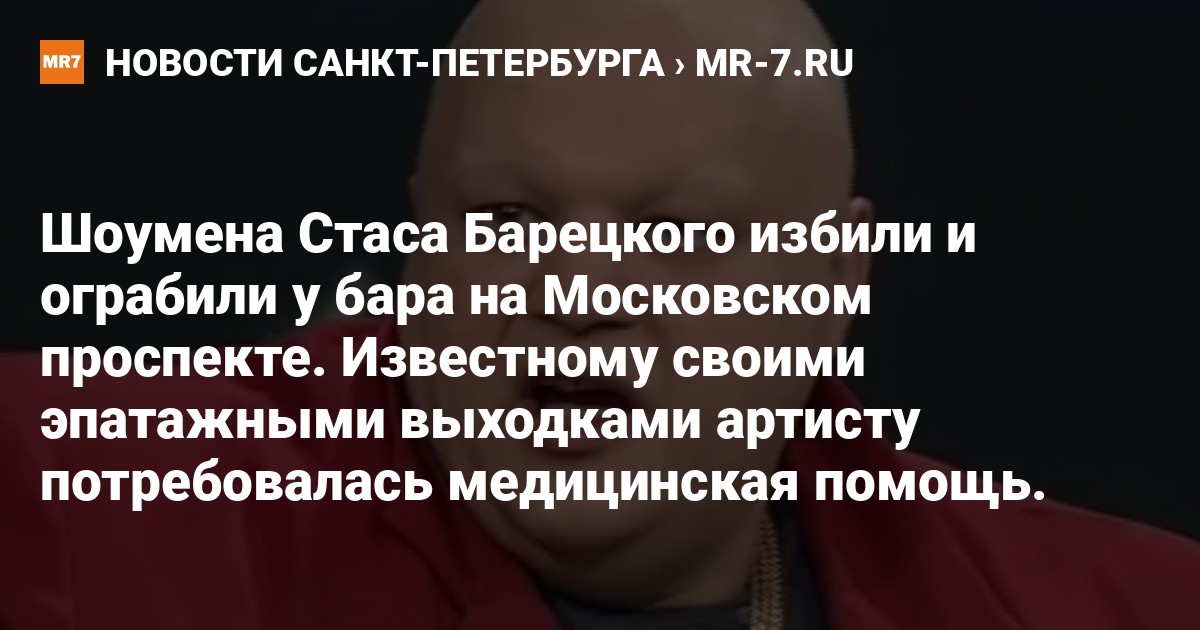 Эпатажного шоумена Стаса Барецкого рано утром 11 декабря избили и ограбили у бара на Московском проспекте, сообщает 78.ru со ссылкой на источники в правоохранительных органах.