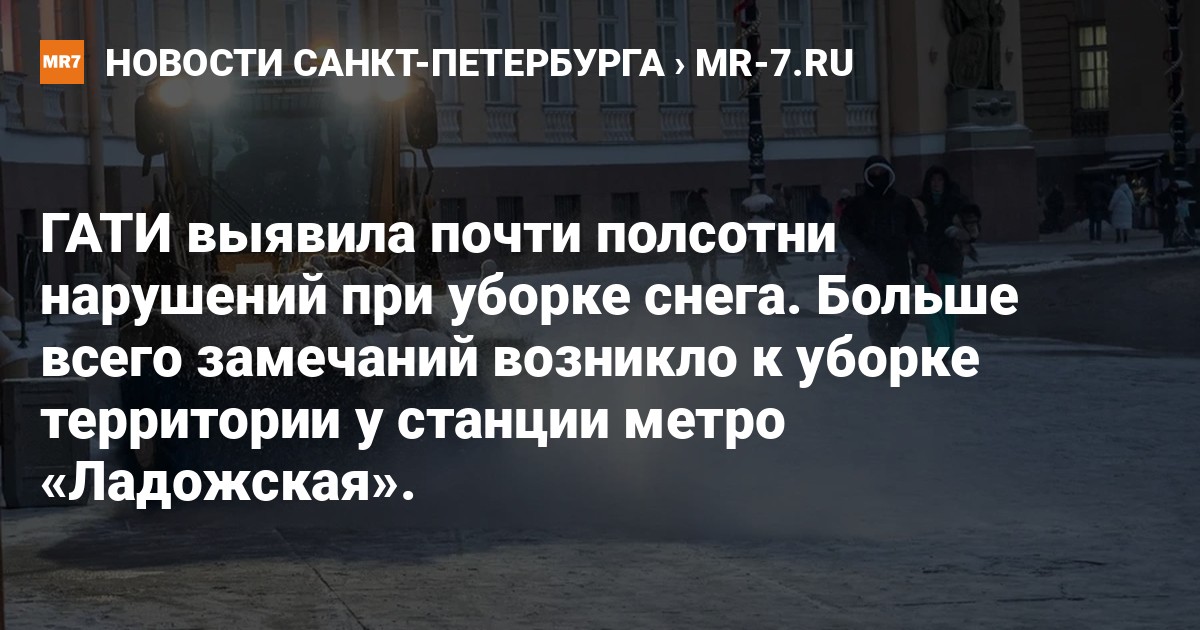 Государственная административно-технической инспекция (ГАТИ) за сутки провела выборочную проверку уборки снега на 464 объектах Петербурга. В результате на 249 территориях выявлено 48 нарушений.