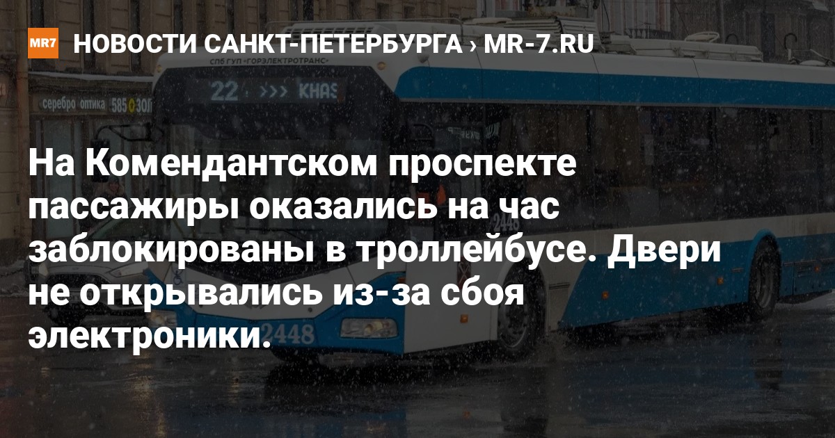 Вечером 16 декабря на Комендантском проспекте сломался троллейбус, в котором находились пассажиры. Из-за технических неполадок водитель не смог открыть двери. В итоге людям пришлось провести в салоне около часа в ожидании помощи, пишет 78.ru.